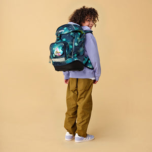 The perfect fit ergobag relieves children's backs through equal weight distribution! It is equipped with the professional "Your-Size-System" adjustable back-support system that can be individually adjusted to any children of height from 1.0m to 1.50m. The durable pelvic fins distribute the weight of school books evenly on the more sturdy pelvis, while arms are free to move with the adjustable chest strap.