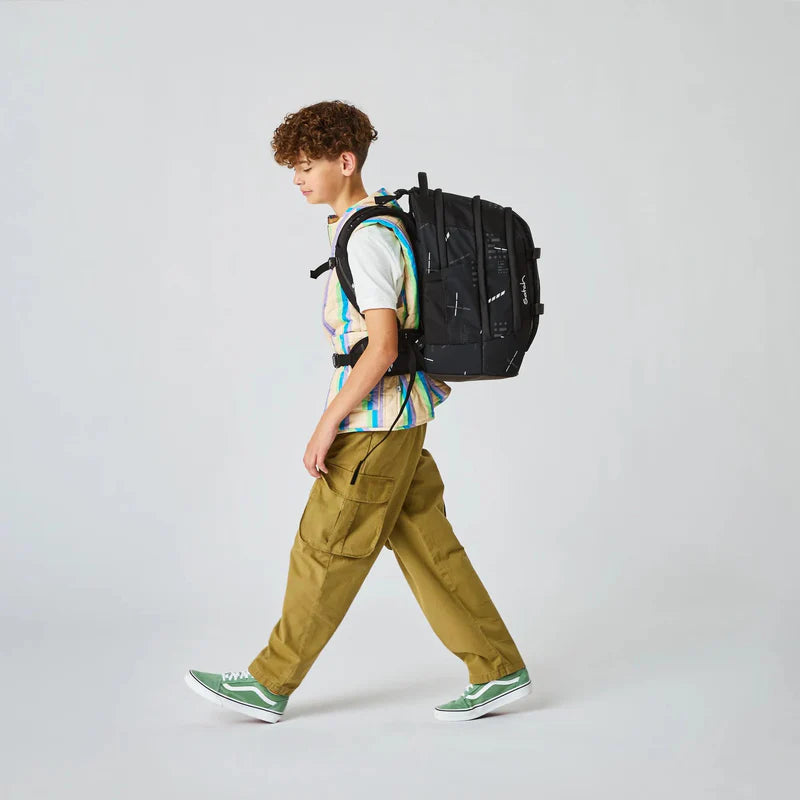 Satch Pack innovatively combines the core features of high-performance trekking backpacks with practical features required of a school bag. It adopts the principle of optimal load distribution, commonplace in professional hiking backpacks.