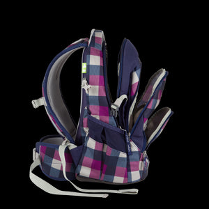 With an ergonomically shaped aluminium sectional rail, the Satch Air fits comfortably close to the back of the child. The broad anatomically shaped hip belt distributes the weight from the shoulders to the stable pelvic area. The height-adjustable chest strap supports a perfect fit.